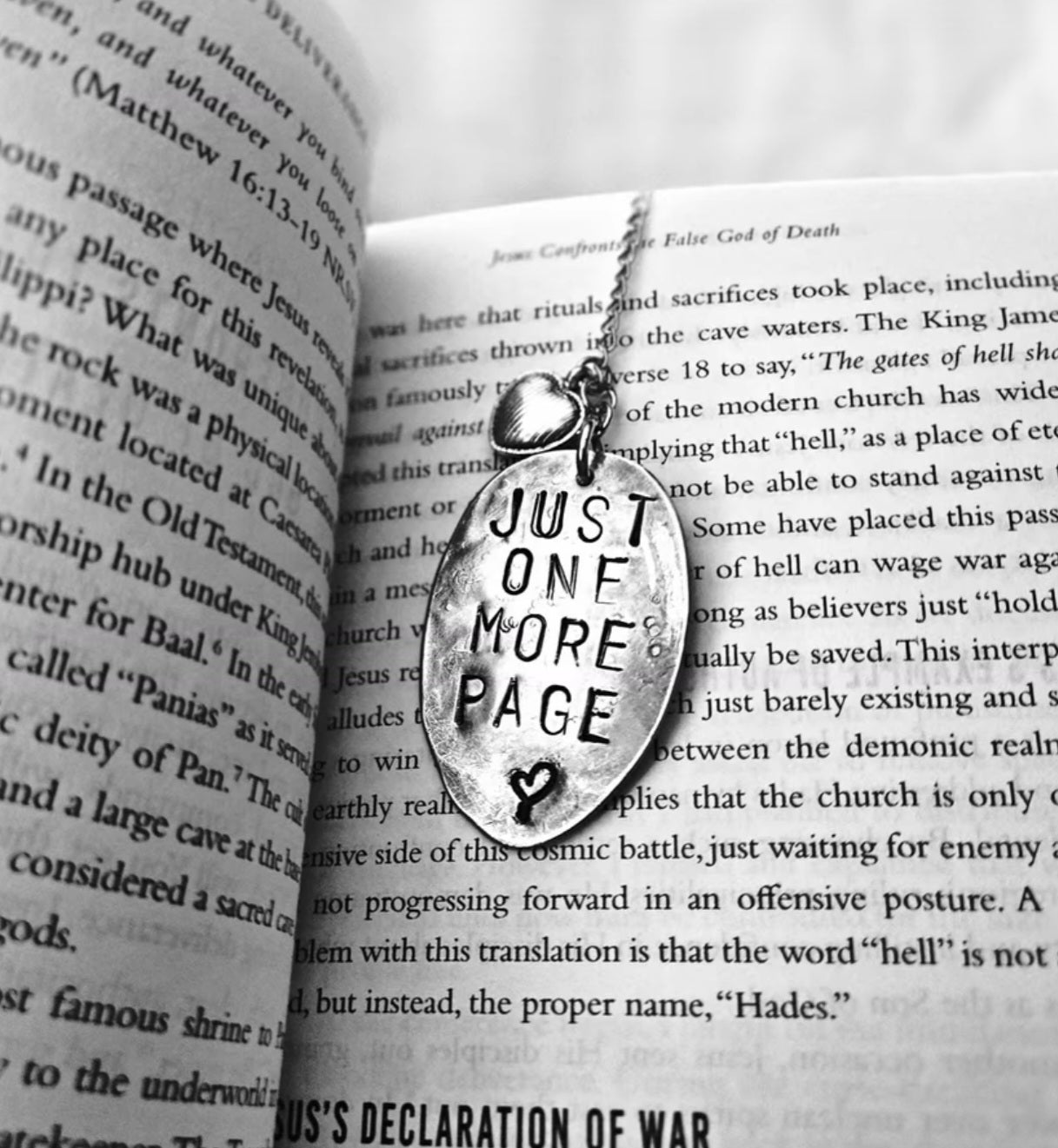 This isn’t just a bookmark — it’s your story, hand‑stamped into vintage silver that’s been given new life. When you choose a 4–5 short word phrase, you’re choosing a daily reminder that will meet you every time you open your book. I plan each layout carefully so your words fit beautifully across the spoon’s canvas, then strike each letter one at a time with patience and precision. It takes 30 40 minutes of focused work, and if a strike is off, I start over — because your words deserve perfection. Finished with ribbon or chain and free charms for extra sass, this bookmark is more than a page holder; it’s a keepsake crafted just for you, with meaning in every detail.