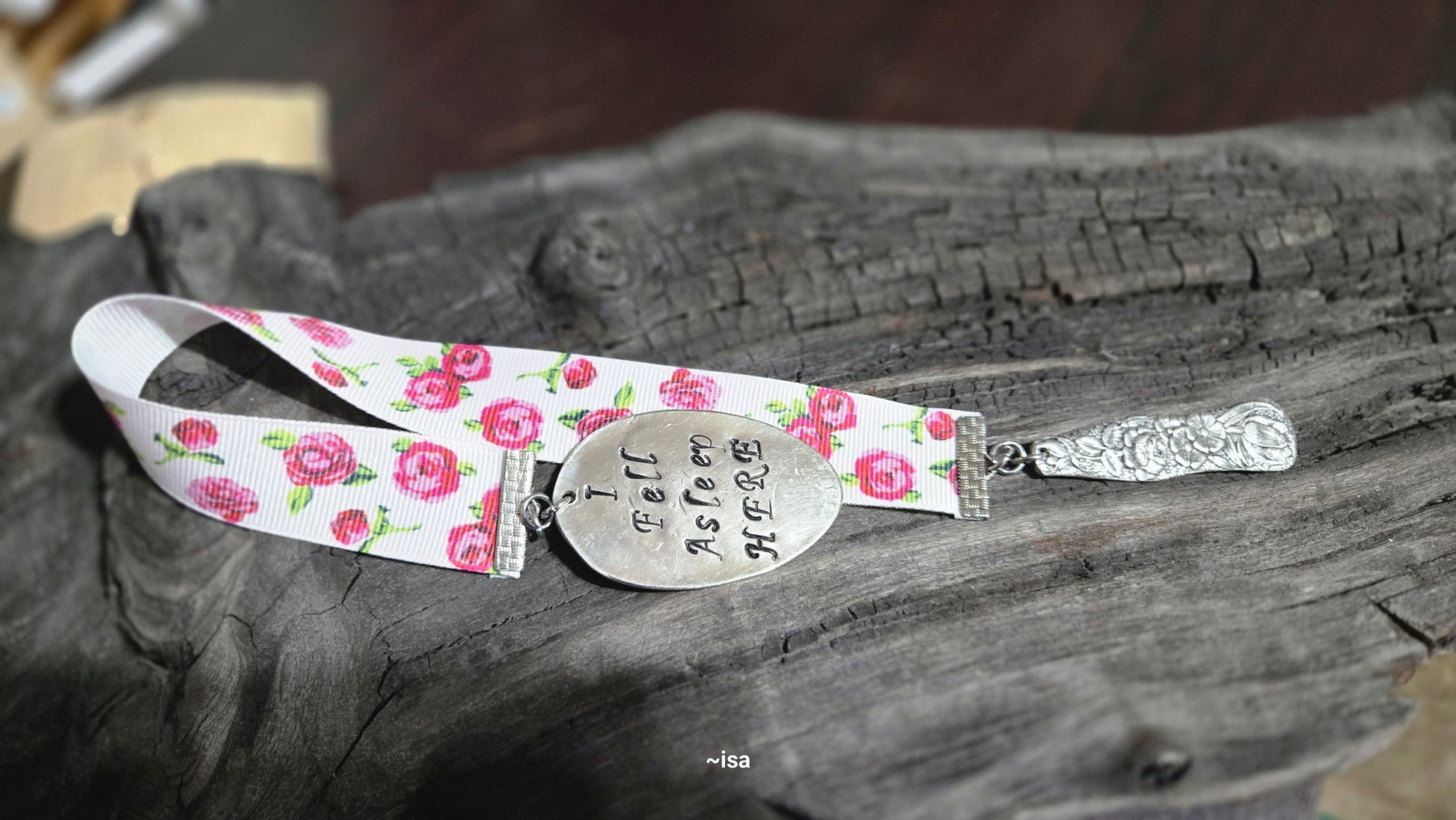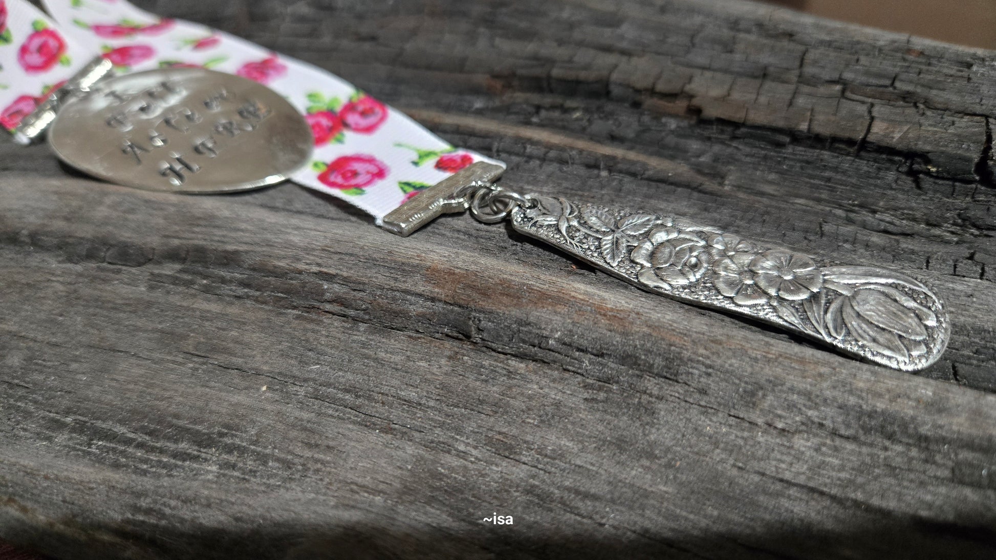 This isn’t just a bookmark — it’s your story, hand‑stamped into vintage silver that’s been given new life. When you choose a 4–5 word phrase, you’re choosing a daily reminder that will meet you every time you open your book. I plan each layout carefully so your words fit beautifully across the spoon’s curve, then strike each letter one at a time with patience and precision. It takes 20–30 minutes of focused work, and if a strike is off, I start over — because your words deserve perfection. Finished with ribbon or chain and free charms for extra sass, this bookmark is more than a page holder; it’s a keepsake crafted just for you, with meaning in every detail.