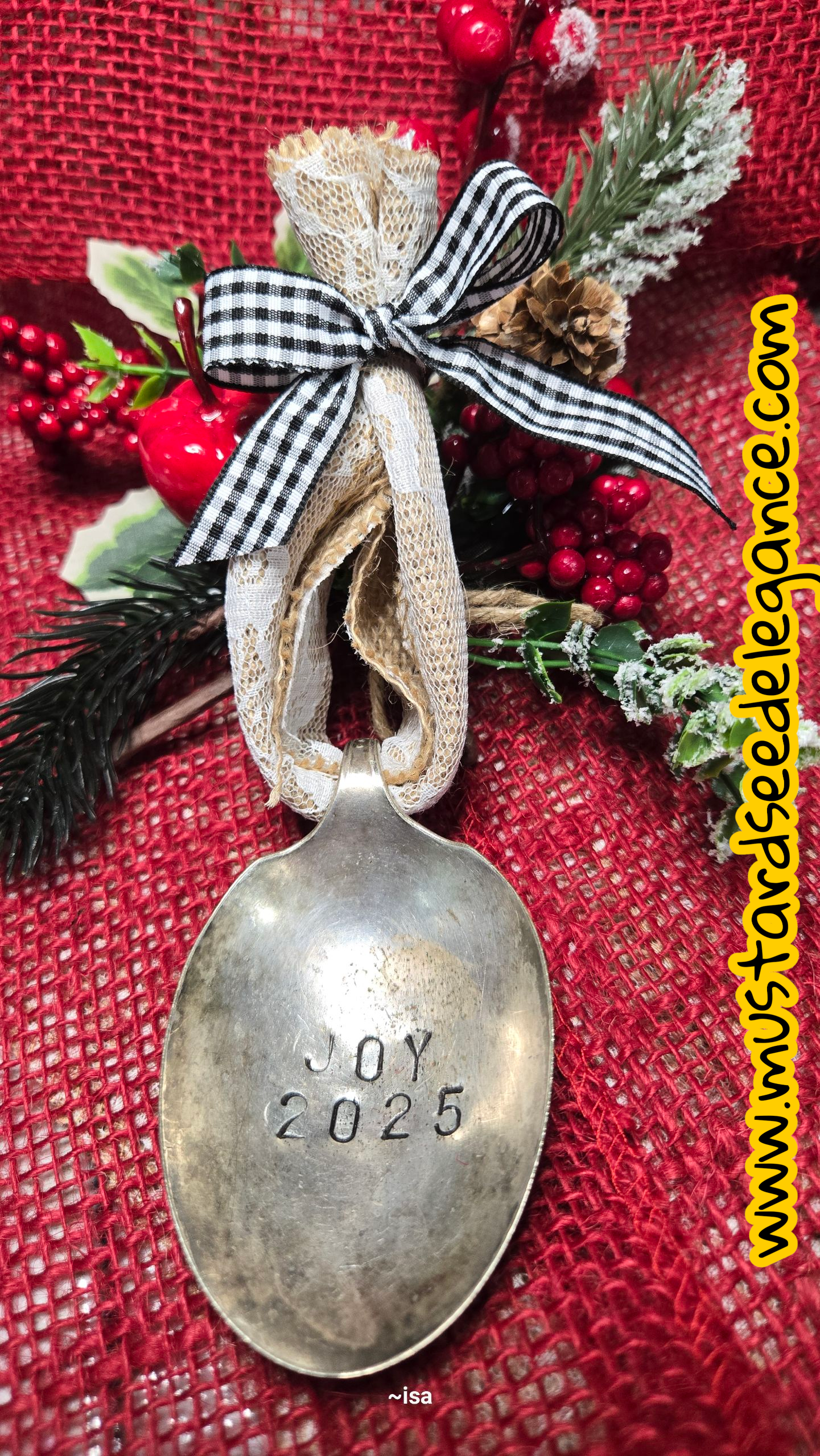 Brighten up your Christmas tree with our Boho Spoon Ornament! Each ornament features a silver-plated spoon bowl, adorned with a festive burlap ribbon and a cute checkered bow. Some are plain for a minimalist look, while others are stamped with festive Christmas sentiment. Spice up your holiday decor with this quirky and unique ornament!
