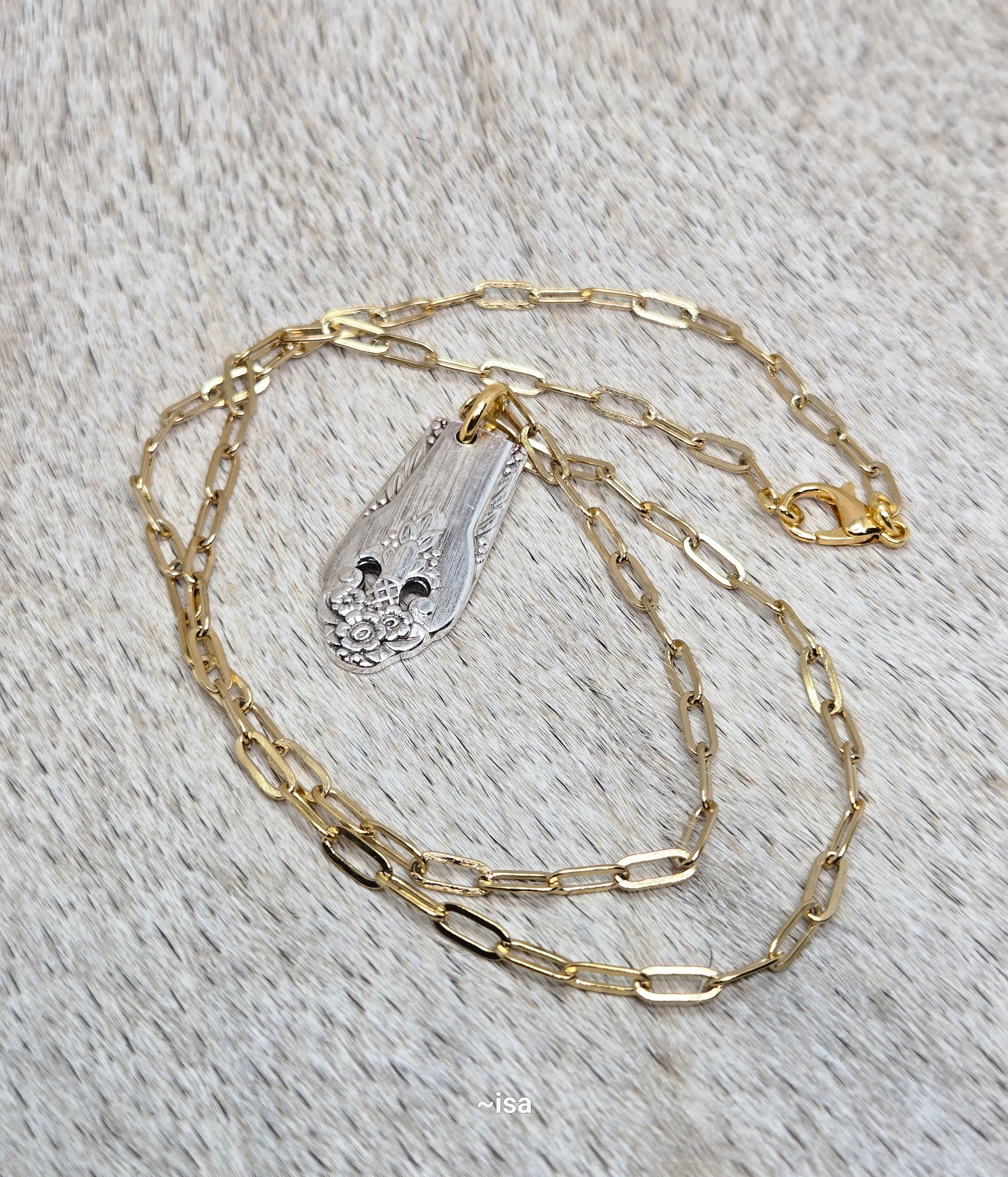Gold paperclip silver handle necklace
